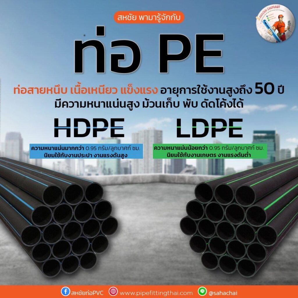 วันนี้สหชัยจะพามารู้จักกับ ท่อ PE #ท่อสายหนึบ สายเหนียว อยู่ยงคงกระพัน ใช้งานกันได้ยาว ๆ สูงถึง 50 ปี สำหรับตัวท่อ PE จะแบ่งออกเป็น 2 แบบ 2 ความนิยมในการใช้งาน คือ… 1) แบบ HDPE ความหนาแน่นมากกว่า 0